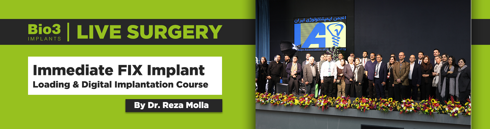 همزمان با پانزدهمین کنگره انجمن ایمپلنتولوژی ایران که از ۲۵ تا ۲۸ آذر ماه ۱۴۰۴ در نمایشگاه بین‌المللی ایران‌مال برگزار گردید، به عنوان یکی از برنامه‌های کنگره و تحت اسپانسری شرکت دیان سلامت دندان، لایوسرجری Immediate FIX Implant Loading & Digital Implantation توسط استاد ارجمند، جناب آقای دکتر رضا ملا بود که روز چهارشنبه ۲۶ آذر ماه ۱۴۰۴ از ساعت ۱۶:۰۰ الی ۱۸:۰۰ در سالن اصلی ایران‌مال برگزار شد.